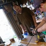 Cheeseboard making Club members utilizing their skills making cheeseboards for prizes, for upcoming trivia and movie nights 206.
